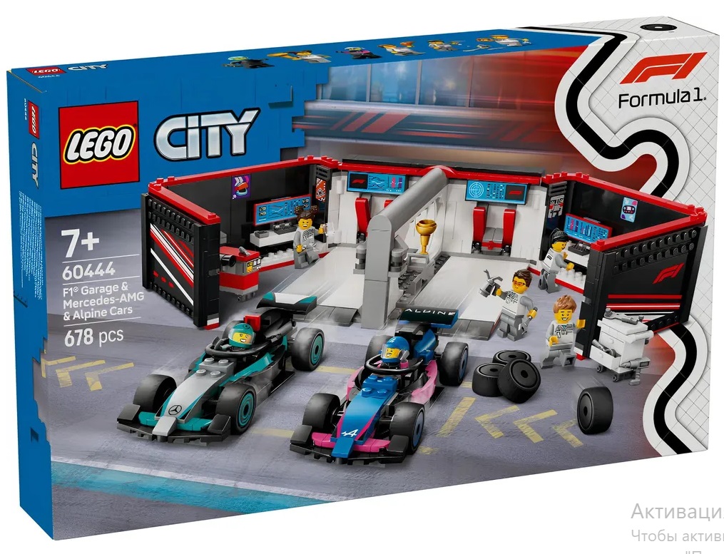 LEGO City 60444 «Гараж F1 для Mercedes-AMG и Alpine» — динамичный набор с техникой Формулы-1, инструментами и минифигурками, позволяющий детям создавать реалистичные гоночные сцены и увлекательные сервисные операции.