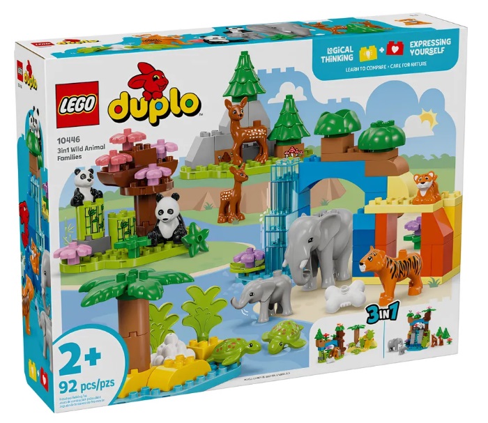 Конструктор LEGO® DUPLO® 10446 «Семьи диких животных» — яркий набор для малышей от 2 лет. Фигурки животных, обучающие игры и крупные детали развивают воображение, моторику и любовь к природе.